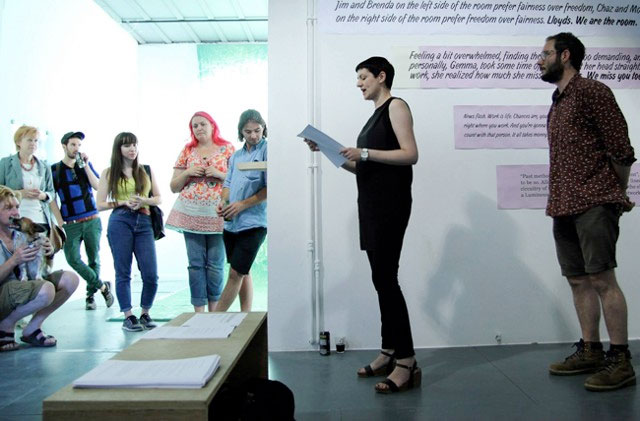 The School of the Event Horizon's first exhibition and live performance, True Stories from the Event Horizon, was curated by Peer Sessions at ASC Gallery in April 2014.