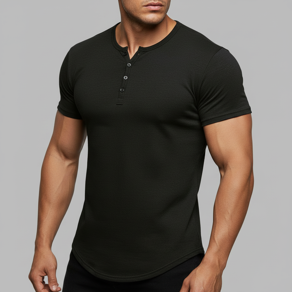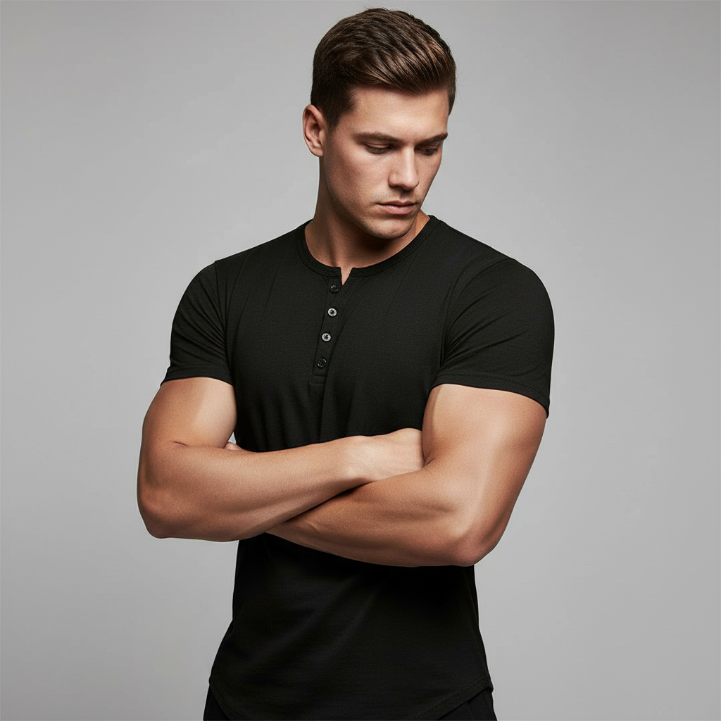 This classic short-sleeved Henley shirt is designed for men who embrace a vibrant lifestyle. Crafted from a soft cotton-polyester blend, it serves as a versatile addition to any casual wardrobe. Perfect for both lounging at home and enjoying a night out, this shirt effortlessly combines style with comfort.